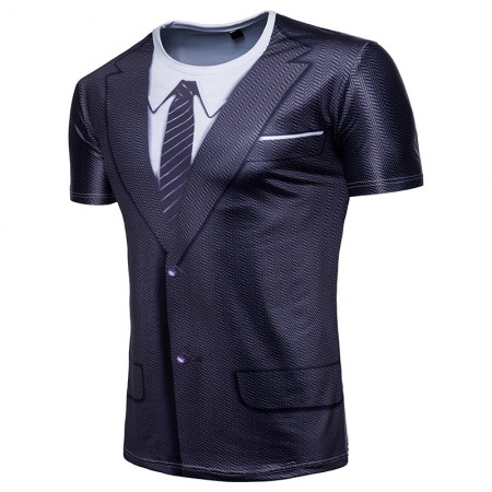 Men's 3D Short-Sleeved T-Shirt Fake Two-Piece Printed Suit Printed Shirts