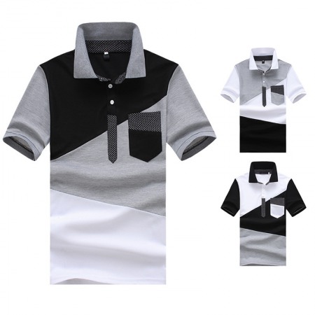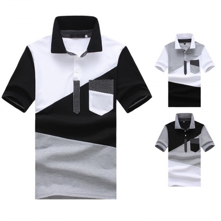 New Men's Irregular Color Matching Stitching Short Sleeve Polo
