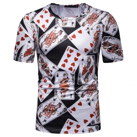 New Summer Men's Playing Card Printing Short-Sleeved T-Shirt