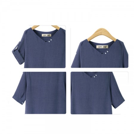 Summer New Style V-Neck Short-Sleeved T-Shirt Hot Loose and Thin Plus Size Sleeve Shirt